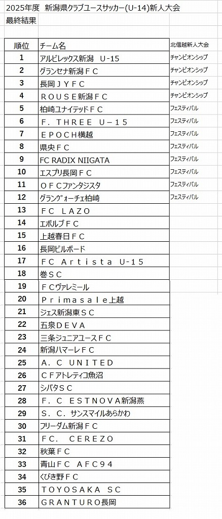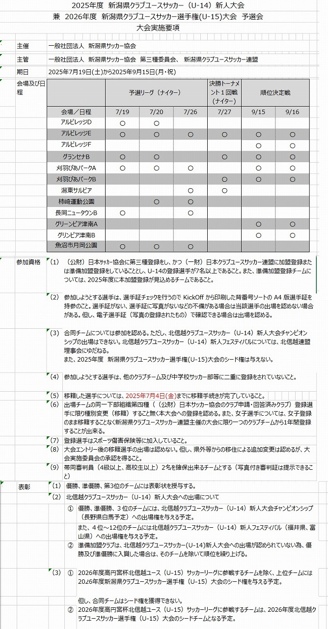 y2025”N“xVŠƒŒ§ƒNƒ‰ƒuƒ†[ƒXƒTƒbƒJ[iU-14jVl‘å‰ï Œ“@2026”N“x@VŠƒŒ§ƒNƒ‰ƒuƒ†[ƒXƒTƒbƒJ[‘IŽèŒ (U-15)‘å‰ï@—\‘I‰ï z